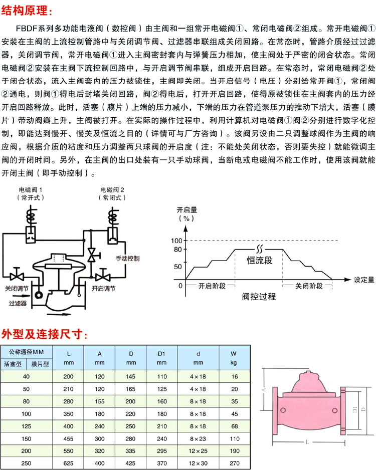 多功能電(dian)液閥結構(gòu)原理、外形(xíng)及連接尺(chi)寸